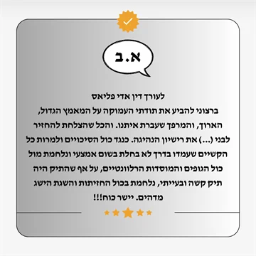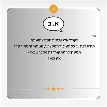 ניסיון זה, בשילוב עם גישתו המחויבת והמקצועית, הוביל להקמת משרדו השם דגש על שירות אישי, ליווי מקצועי צמוד ואסטרטגיה משפטית מותאמת אישית לכל לקוח, תוך שמירה קפדנית על זכויותיהם והבטחת הגנה משפטית מקסימלית.